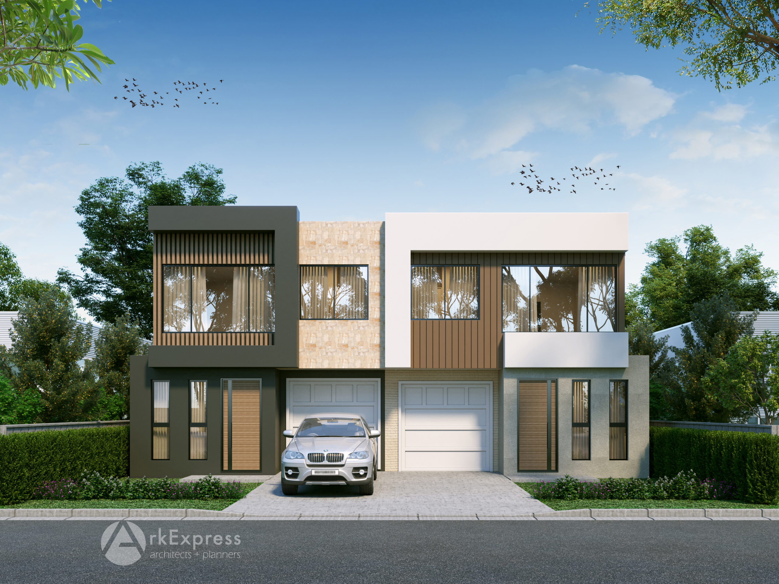 A modern dual occupancy fast tracked and approved with less hassle through complying development under the Low Rise Housing Diversity Code. The two dwellings share the same architectural language yet retain a sense of individuality, differentiated by contrasting colour palette. Entering these 5-bedroom homes, there is an immediate sense of space, light, warmth and pure openness. CDC approved and completed October 2023.